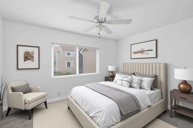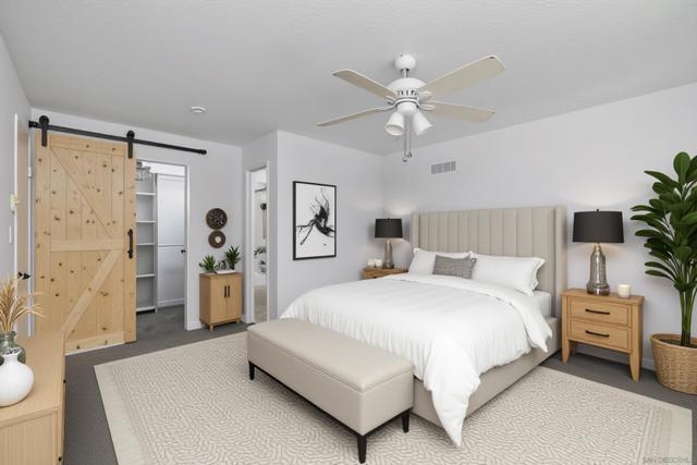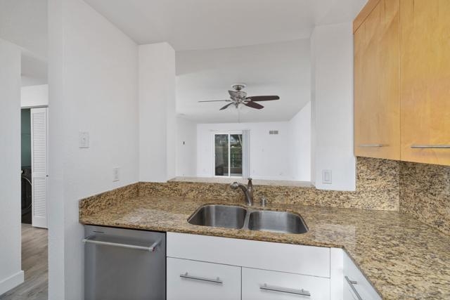 Ideally located in the heart of La Jolla Colony, this spacious home is just steps from shopping, dining, and the UCSD shuttle—perfect for students or first-time buyers. Features include tile plank flooring, an open living room leading to a private patio with views and storage, and a kitchen with granite counters and stainless appliances. The two bedrooms are set on opposite sides for added privacy, with new carpet and paint. The primary suite offers a walk-in closet with a barn door. Both bathrooms have granite counters and ample storage. Full-size washer/dryer included. Enjoy a front courtyard, greenbelt access out back, and nearby dog park. Community amenities include pools, spa, gym, and clubhouse.