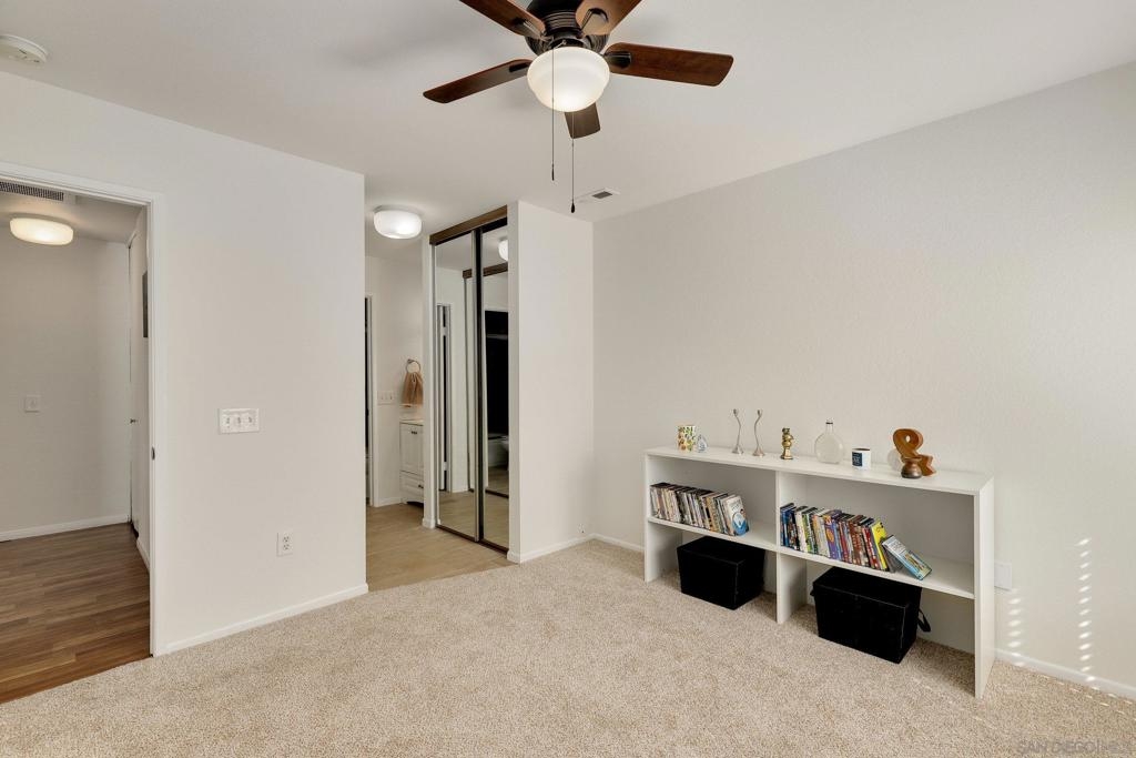 Move-in ready top floor condo located within the Villas of Capricorn in Mira Mesa!! Enter this charming retreat to a light and bright floor plan with a dual primary suite layout. This updated abode boasts upgrades throughout, including: a modern galley kitchen with stainless steel appliances, granite counters and wood cabinetry, modern bathroom vanities, wood flooring in the living areas, new carpet in bedrooms, and so much more! The property also features a large private balcony with an outdoor seating area and one assigned covered parking space. The Villas of Capricorn offers its residents access to the community pools, spas, and laundry facilities. The complex is situated near great shopping, restaurants, and has easy freeway access. Don't wait - book a tour today!