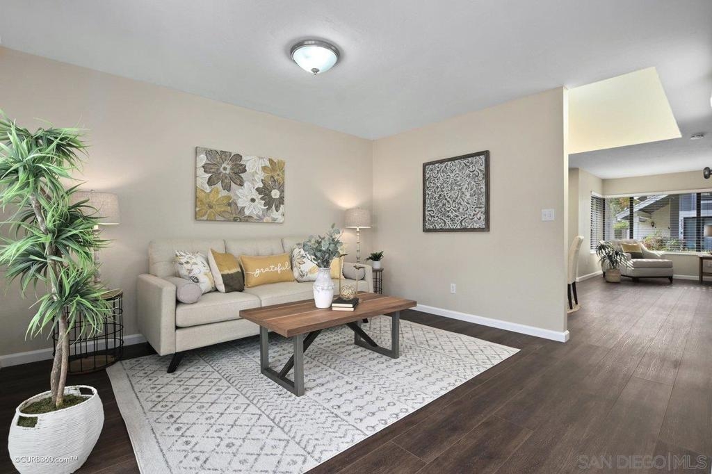 Gorgeous and rarely available 2 story townhome in the highly sought after complex of Concord Square. The spacious and open layout create a beautiful and inviting space in the heart of Mira Mesa. This meticulously maintained home features fresh paint, luxury vinyl flooring, newer carpet, remodeled kitchen, new HVAC system, stainless steel appliances, full size laundry room, and a beautifully paved private patio. You are in the heart of Mira Mesa - Walking distance to schools, parks, library, shopping, Mira Mesa Community Park Recreation Center, restaurants, movies & more! The complex features resort style facilities and make this home an absolute delight... don't miss out! List of upgrades: Luxury vinyl plank flooring and new carpet installed in 2018. Resurfaced all kitchen cabinet in 2018. New HVAC system installed in 2020. Backyard pavers and DG installed in 2022. Fresh paint, new LED lights in 2022. Great privacy with trees in the yard.