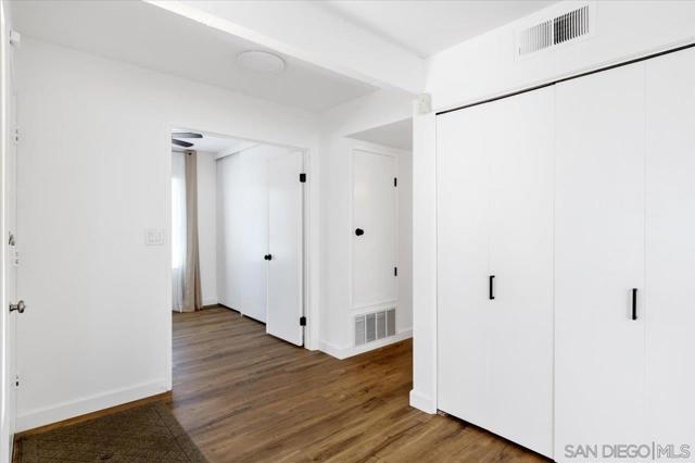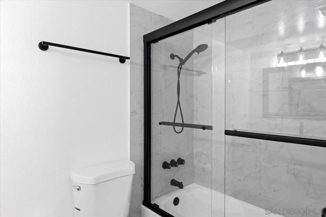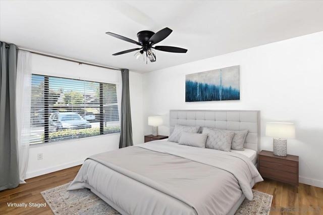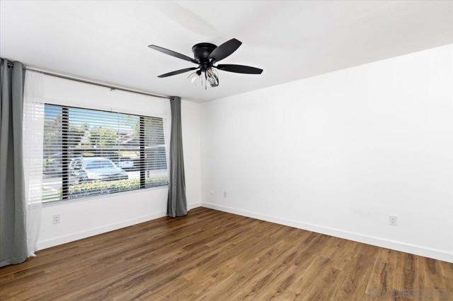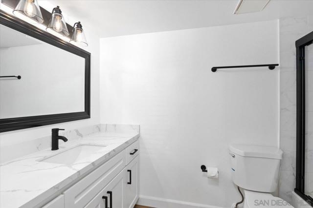 Price reduced!! Fully renovated 2-bedroom, single-level end unit home in a tranquil, parklike community with lush landscaping in the heart of Mira Mesa! This beautiful lower-level condo has no stairs and a large enclosed, private patio accessible through sliding glass doors. Step right out of the patio (through a convenient gate) or the front door to manicured lawns. Light & bright, this unit is completely upgraded & features newer LVP flooring, custom light fixtures, newer ceiling fans, a remodeled kitchen, updated bathrooms, a reconfigured interior laundry/utility closet, & AC. The kitchen is gorgeous with stainless steel appliances, quartz counters, & crisp white cabinetry. Lots of storage (including cabinets on both sides of the island, and an exterior closet next to the patio) & a great flow from the kitchen to the dining and living areas maximize the space. Both bedrooms are generous with exceptionally large and very tall closets. The primary bedroom is an ensuite with a beautiful spa-like bath featuring quartz counters, modern black fixtures, white cabinets, & a newer shower/tub combo. The half bath is also updated & accessible from the hallway. Continued in Supplemental Remarks... Laundry room off the kitchen with a full-sized stacked washer and dryer is a rare find in a condo community like this! A big coat closet in the entryway & exterior closet on the patio provide extra storage options. One covered parking space is included (#200). Residents enjoy access to the community pool, spa, & green spaces. Close to tons of restaurants, shops, & parks. Mira Mesa hosts wonderful annual community events that are just a short walk or drive away from this unit! A central San Diego location that is convenient to all! Don't miss this turnkey unit that is ideal for a primary residence or investment property in a robust & thriving community!