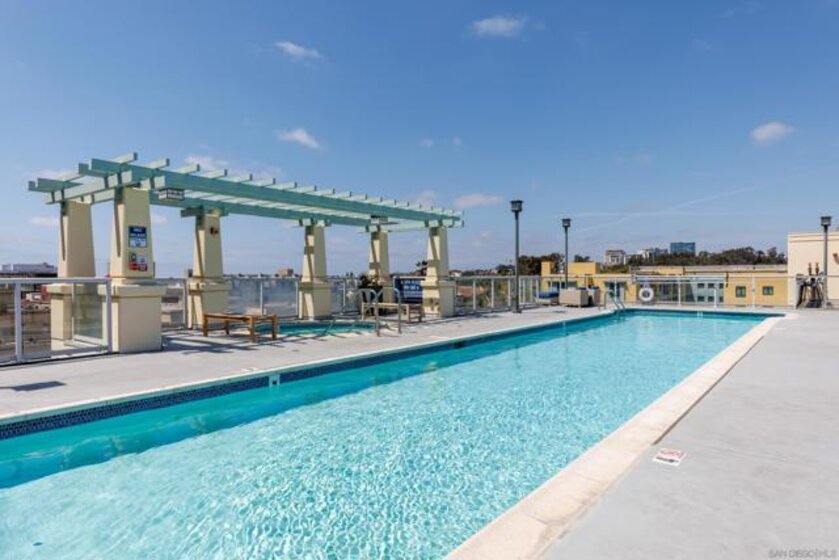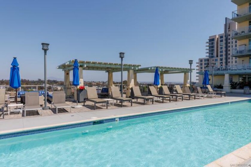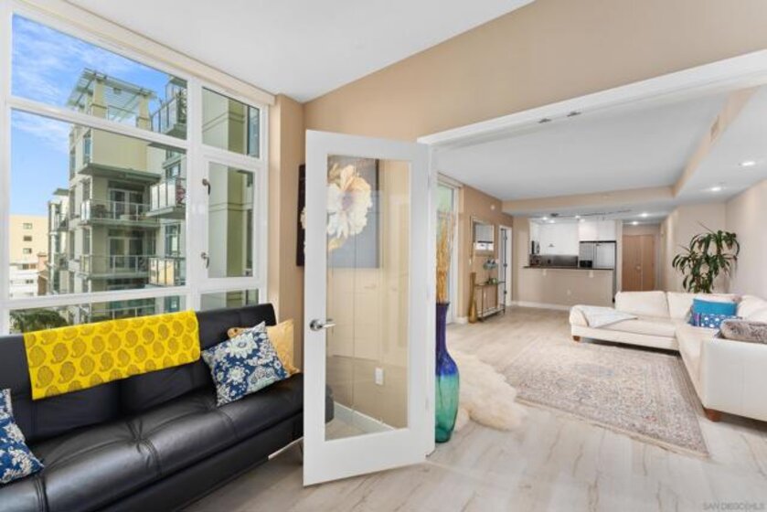 Bright, Quiet, and Updated—Refined Downtown Living at Discovery Welcome to Unit 701 at Discovery in Cortez Hill, a beautifully refreshed corner residence offering natural light, interior-facing tranquility, and modern style. Situated on the quiet side of the building, this 2-bedroom, 2-bath home enjoys peaceful courtyard and soft city views through floor-to-ceiling windows and French doors that open to a private balcony. Recent upgrades include brand new luxury vinyl plank flooring, fresh designer paint, and newly painted cabinetry that gives the space a clean, contemporary feel. The open-concept living and dining area features a cozy fireplace and a built-in mini wine fridge, while the functional layout includes an in-unit washer/dryer, assigned parking, and a separate storage unit. The spacious primary suite includes a generous walk-in closet with custom built-ins, and both bedrooms are comfortably sized with great natural light. Discovery offers full-service amenities with a recently remodeled rooftop pool and spa, upgraded fitness center with new equipment, stylish lounges, firepits, and 24-hour concierge and security. Residents also benefit from a professionally managed, well-established HOA and a yearly renewable guest street parking permit from the City of San Diego. Located in the peaceful, tree-lined neighborhood of Cortez Hill—close to Little Italy, Balboa Park, and downtown hot spots—this move-in-ready home offers the best of urban living with a sense of calm. Welcome to Discovery at Cortez Hill, where modern comfort meets refined downtown living in this beautifully updated 2-bedroom, 2-bath corner residence. Located on the 7th floor, Unit 701 features brand new luxury vinyl plank flooring, fresh designer paint, and a light-filled layout that offers both style and functionality. Enjoy floor-to-ceiling windows, a private balcony with peaceful city and courtyard views, and a split-bedroom design ideal for privacy or remote work. The spacious primary suite includes a generous walk-in closet with custom built-in shelving, perfect for streamlined storage. Discovery is a full-service luxury building offering a recently renovated amenities floor, including a resort-style rooftop pool and spa, upgraded fitness center with new equipment, stylish lounge areas, and firepits for relaxed evening gatherings. With 24-hour concierge, security, and secure parking, every detail is designed for convenience and peace of mind. Located in the charming, tree-lined neighborhood of Cortez Hill, you’re just minutes to Little Italy, Balboa Park, and the vibrant energy of downtown. Move-in ready with modern upgrades—discover elevated urban living at Discovery.