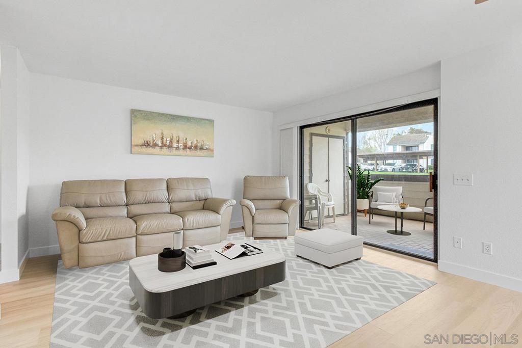 Welcome home! A charming 2-bedroom, 2-bathroom condo nestled in the heart of San Diego's desirable Mira Mesa neighborhood. This ground-floor unit offers a spacious layout with a sought-after dual master bedroom design, providing ample privacy and comfort. The interior boasts brand new LVP flooring and paint throughtout, complemented by granite countertops in the kitchen and resurfaced countertops in both bathrooms. Enjoy the convenience of in-unit laundry and central air conditioning, ensuring year-round comfort. Step outside to a generous patio space, perfect for relaxing or entertaining guests. Residents benefit from two assigned parking spaces—one covered carport—and access to community amenities, including a pool. The HOA fee covers trash services and common area maintenance. Located within walking distance to Mira Mesa Community Park, schools, the library, major stores, diverse restaurants, and the local farmer’s market, this condo offers unparalleled convenience. Experience the vibrant community events Mira Mesa hosts, such as the 4th of July parade and Chinese New Year celebrations. The neighborhood is known for its multicultural atmosphere, quality schools, and a strong sense of community.Don't miss the opportunity to make this delightful condo your new home in one of San Diego's most welcoming neighborhoods. Some photos virtually staged.