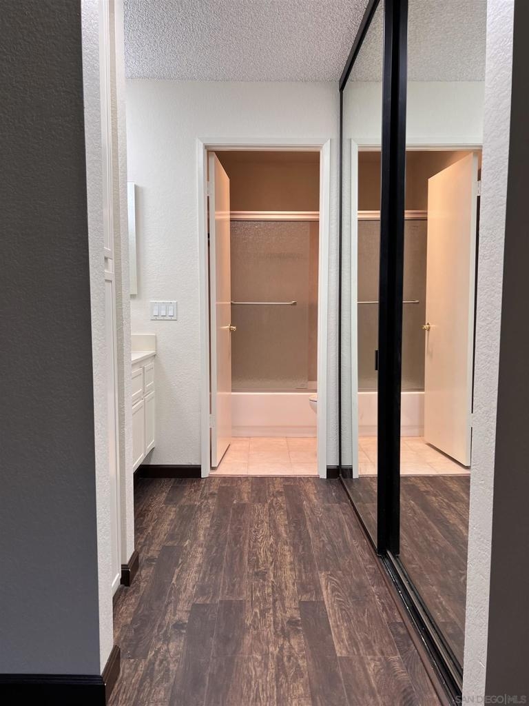 Your Dream Condo! Newly renovated, Dual Master floor plan witha large private patio overlooking the swimming pool area. Ground floor unit with brand new never used appliances, Wood floors throughout, with 2 master bath, one walk in shower and the other a tub for your enjoyment. Brandnew Large stackable washer and dryer and AC in unit that you can enjoy during summertime. HOA fee includes trash, pool access, roof and common common area maitenance. Complex is centrally located, close to all major stores, restaurants, schools, library, mira mesa park and farmers market. A must see! Equipment: Dryer, Washer Sewer: Public Sewer Topography: LL
