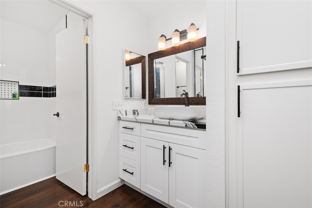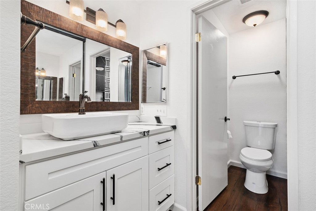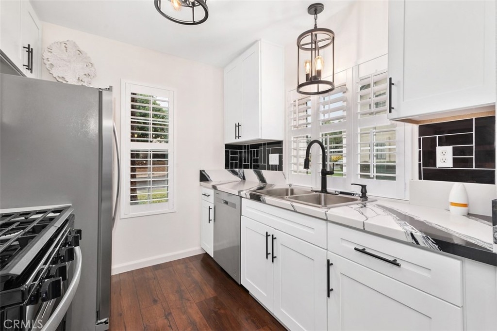 Welcome to this beautifully remodeled FIRST FLOOR 2 bedroom, 2 full bath condo. FHA & VA approved! Completely renovated floor to ceiling, no expense has been spared on high quality upgrades including water resistant luxury plank flooring throughout, fresh paint, plantation shutters, new dual pane energy efficient windows and sliding glass door, new kitchen cabinets with quartz countertops, all new Whirlpool appliances, custom lighting fixtures, complete bathroom remodel with new tubs, showers, quartz countertops, vanities and hardware. The list could go on and on! Perfectly located near restaurants, shopping, FWY, schools and walking distance to Mira Mesa Community Park. This condo offers a convenient hallway laundry room, private patio with a storage closet, a corner unit with plenty of street parking, covered parking space and community pools.