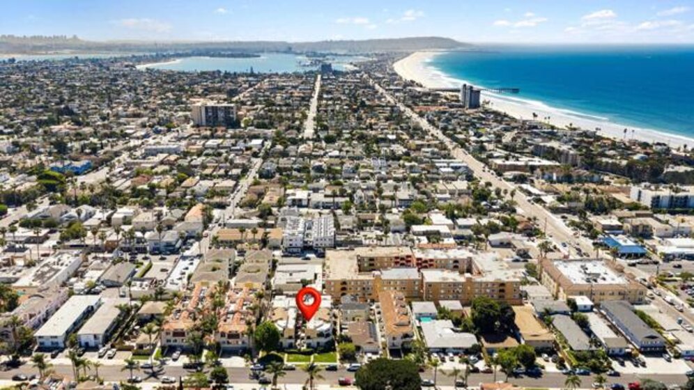 Welcome to this beautifully upgraded townhome on a quiet street within the highly valued La Jolla School District, walking distance to Bird Rock, PB, beaches, shopping, dining, and everyday essentials. This move-in ready home features a fully renovated, modern coastal interior with a quartz countertop kitchen, Whirlpool appliances, main-floor powder room, and in-unit washer and dryer. The open-concept layout flows seamlessly to a private 180 sq ft patio, perfect for indoor-outdoor living and entertaining. Upstairs, the primary suite offers vaulted ceilings, a walk-in closet, and a spacious en-suite bathroom. The second bedroom includes its own en-suite bath, ideal for guests, roommates, or a home office. Additional features include a private 1.5-car garage with extra storage and a dedicated parking space directly in front. Rare opportunity to own a turnkey gem in one of San Diego’s most desirable coastal communities.