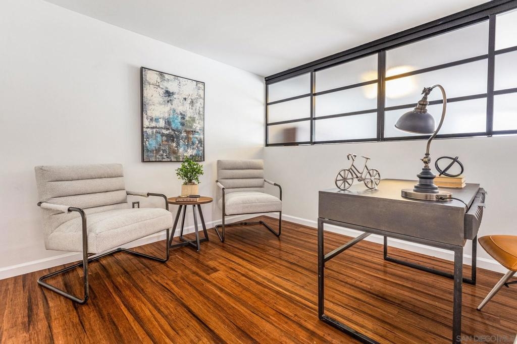 Assumable VA loan at 2.875%.Welcome to Aloft on Cortez Hill, where you can experience the pinnacle of downtown San Diego living. This stunning 1-bedroom condo features a unique layout with a loft area and two full baths, offering both flexibility and privacy within 971 square feet of luxurious living space. The condo showcases high ceilings, an open floor plan, and luxury vinyl plank flooring, creating a sleek and contemporary atmosphere. The gourmet kitchen, equipped with stainless steel appliances, is perfect for cooking and entertaining, while large windows fill the space with natural light, enhancing the airy and spacious feel. The full bedroom includes a spacious walk-in closet and an en-suite bathroom for added convenience, and the flexible loft area provides additional space for an office, guest area, or relaxation zone. Residents can enjoy a range of amenities, including a well-equipped gym, a beautifully landscaped pool area, and private outdoor spaces ideal for socializing and relaxation. The building also offers an elevator and secure underground parking for ease and security. Located in the heart of Cortez Hill, you are within walking distance to top restaurants, cafes, and the vibrant Downtown San Diego scene, making it perfect for professionals, couples, or anyone looking to embrace the dynamic lifestyle of downtown living.