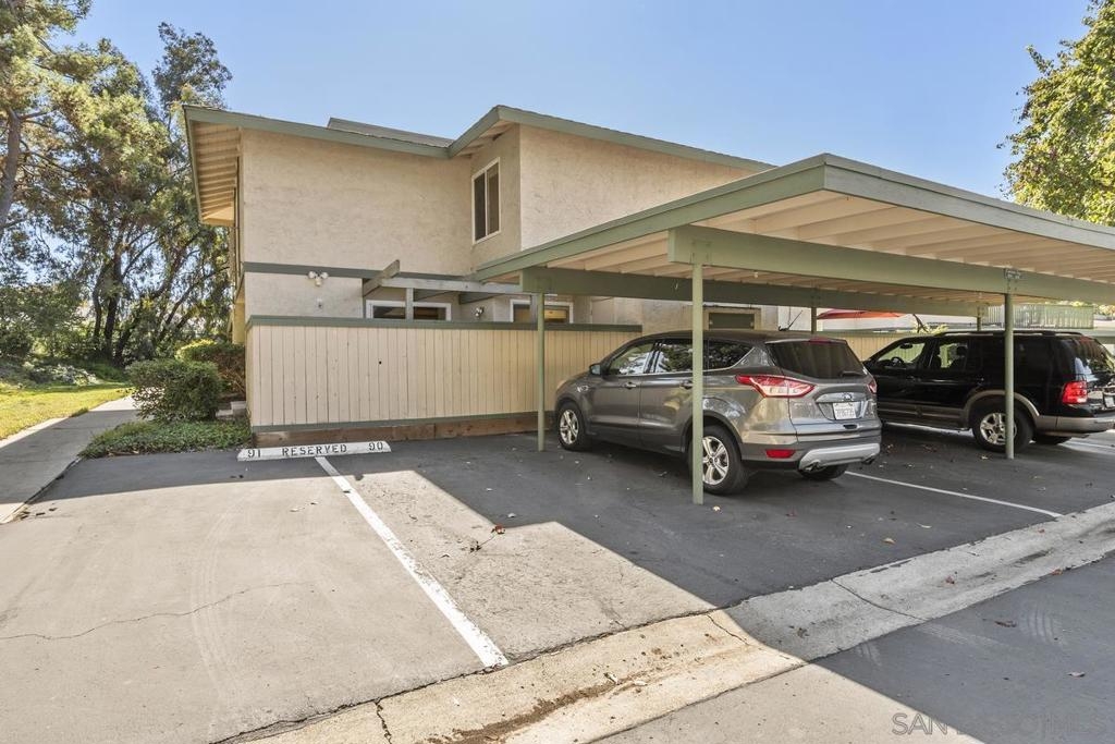 Nestled away from the busy streets, this Mira Mesa townhome is quiet and peaceful. A large, open family room connects seamlessly with adjoining dining area and kitchen. Bright white kitchen cabinets, upgraded fixtures & appliances, and custom tile back-splash give the kitchen an updated look and feel. The three upstairs bedroom share a generous full bathroom complete with dual-sink vanity and shared bedroom/hallway entry doors. The home includes 2 parking spaces (1 covered) within steps of the front door. Equipment: Dryer, Range/Oven, Washer Sewer: Sewer Connected Topography: LL