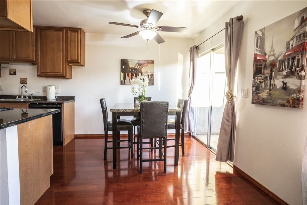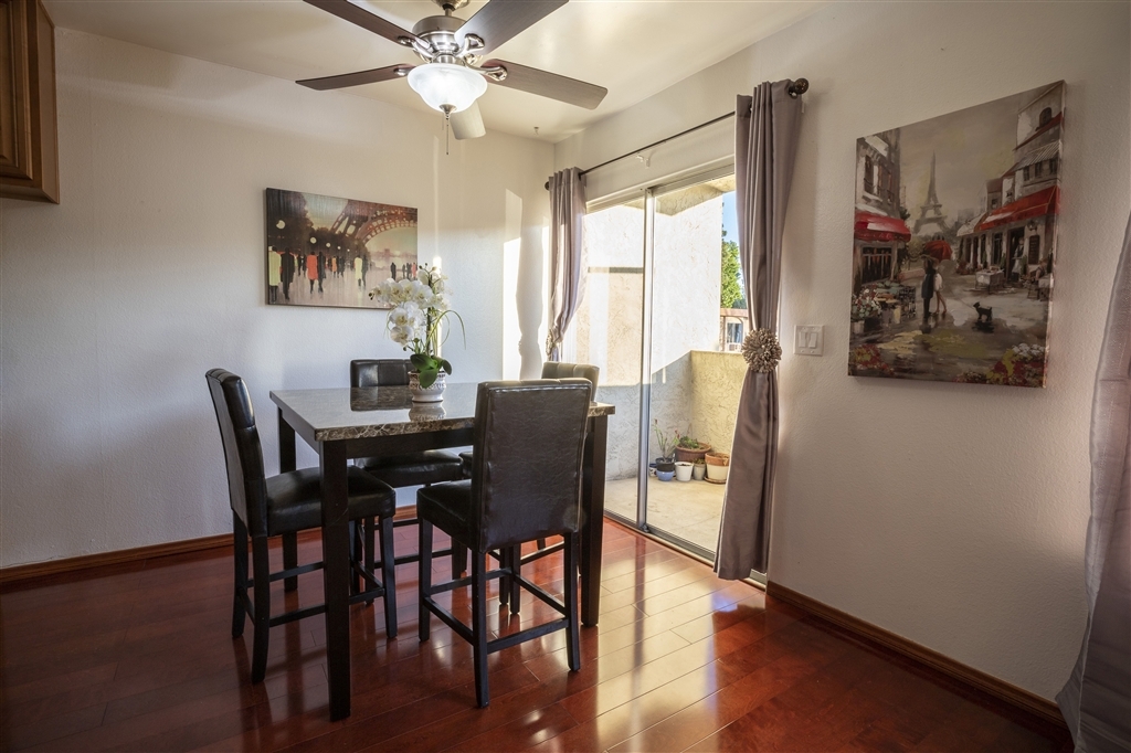 Why rent when you can own this top floor condo! Beautiful hardwood floors in living/dining/kitchen, new carpet in bedroom. Upgraded kitchen w/ granite countertops, newer cabinets, electric stove/oven & dishwasher. Upgraded bathroom w/ tile floors & newer sink & faucets. Dining room w/ ceiling fan & sliding glass door to the private balcony. Larger bedroom w/ huge closet/mirrored door. 2 swimming pool/spa & community laundry. Great location in Mira Mesa near shopping, dining, easy freeway access!. Neighborhoods: Mira Mesa Complex Features: ,,, Other Fees: 0 Sewer: Sewer Connected Topography: LL