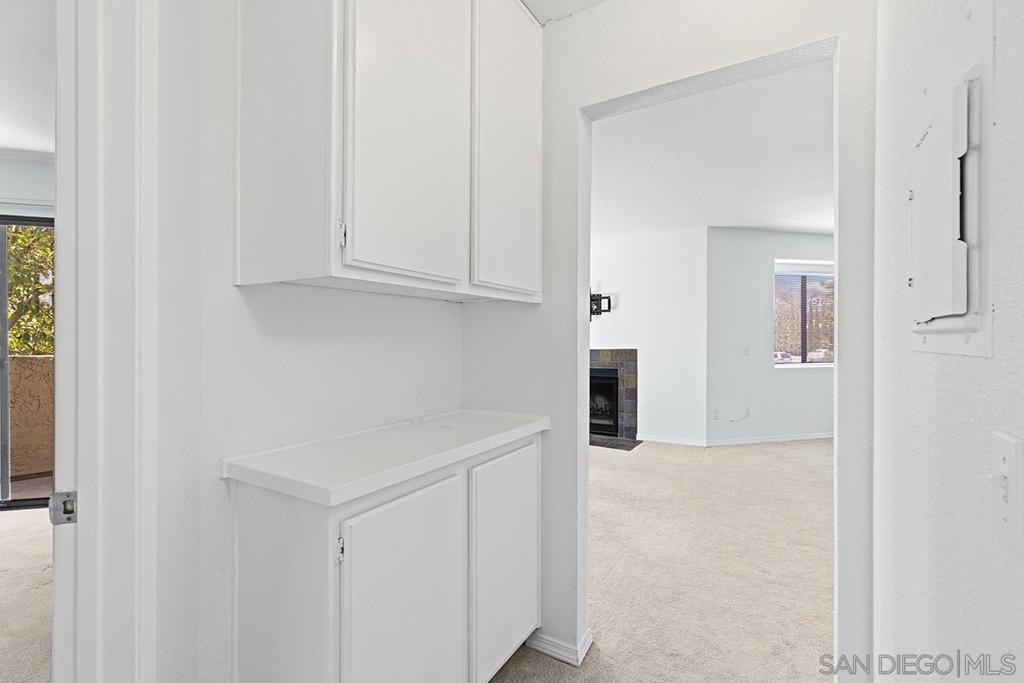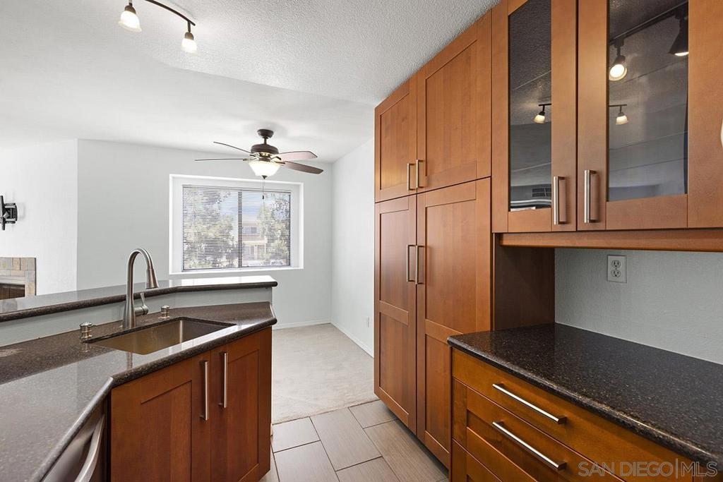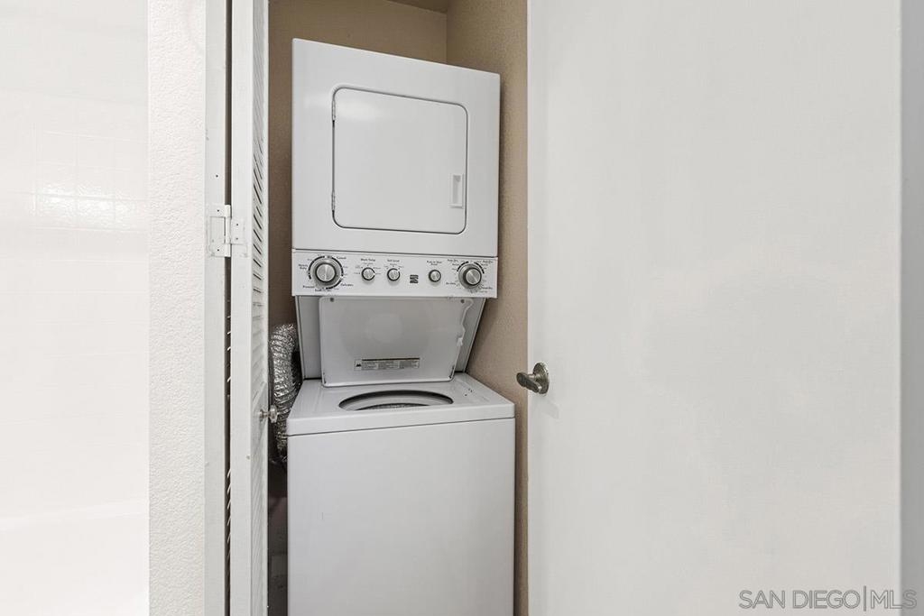 Nestled among the treetops at Creekside in Mira Mesa, this top floor, one bedroom condo is conveniently located near I-15 and is move-in ready! Property features include soft-close kitchen cabinetry installed in 2017, granite countertops in the kitchen that extend to a breakfast bar, balcony access from both the living room and bedroom, a stackable washer + dryer, and only one wall shared with a neighboring unit. Additional features include granite counters in the kitchen that extend to a breakfast bar and a stainless steel kitchen sink, dishwasher and microwave. A large, assigned, one-car garage + an additional parking permit are also included. Community features include a pool, hot tub, barbecue area, dog run and well-maintained lily-pad-filled water features throughout the complex. Equipment: Dryer, Washer Sewer: Sewer Connected Topography: GSL