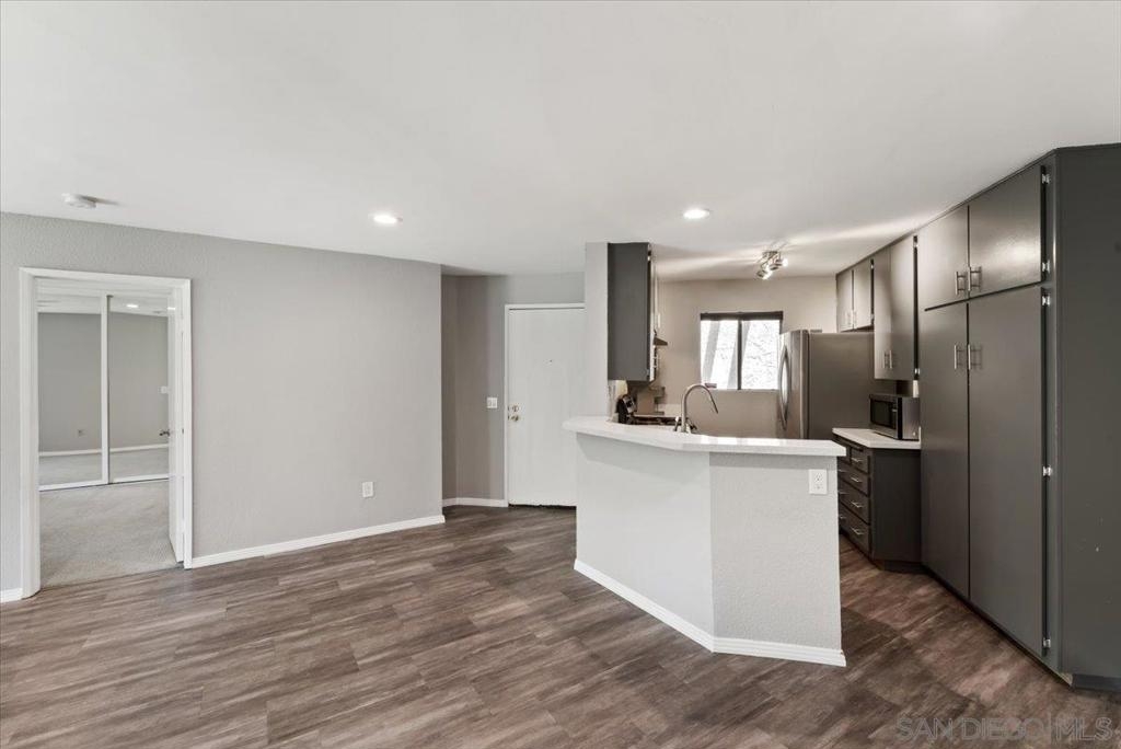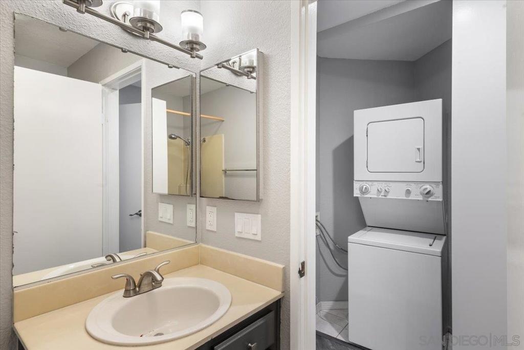 Welcome to this stunning renovated Creekside condo located at 9709 Mesa Springs Way in San Diego, CA. This spacious 2-bedroom, 2-bathroom condo offers 1041 square feet of living space and is situated in a prime location. Step inside to discover a beautifully renovated kitchen and bathroom, providing a modern and luxurious feel. The kitchen features updated appliances, sleek countertops, and ample cabinet space, perfect for both cooking and entertaining. The primary bathrooms boast contemporary fixtures and finishes, creating a spa-like atmosphere. The interior features a thoughtful mix of Legacy Granite floor tiles and Mohawk Carpet with smart cushion padding, creating a comfortable and inviting ambiance. The unit also includes a washer and dryer for added convenience. Experience the tranquil community with lush park-like amenities, hearing the sound of the creek's running water, including a sparkling pool and spa, BBQ area, and a spacious dog park. This condo offers a 2 car garage for secure parking, as well as guest parking for visitors. This home also features a fireplace enhancement with BZ Porcslain Tile (Obsidian Black)fire place, smart thermostat, and upgraded Simonton sliding doors. Located in a desirable area of San Diego, this condo provides easy access to a variety of amenities, dining, and entertainment options and close to the I-15. Don't miss the opportunity to own this beautifully renovated condo in a prime location. Experience the comfort and convenience this home has to offer!