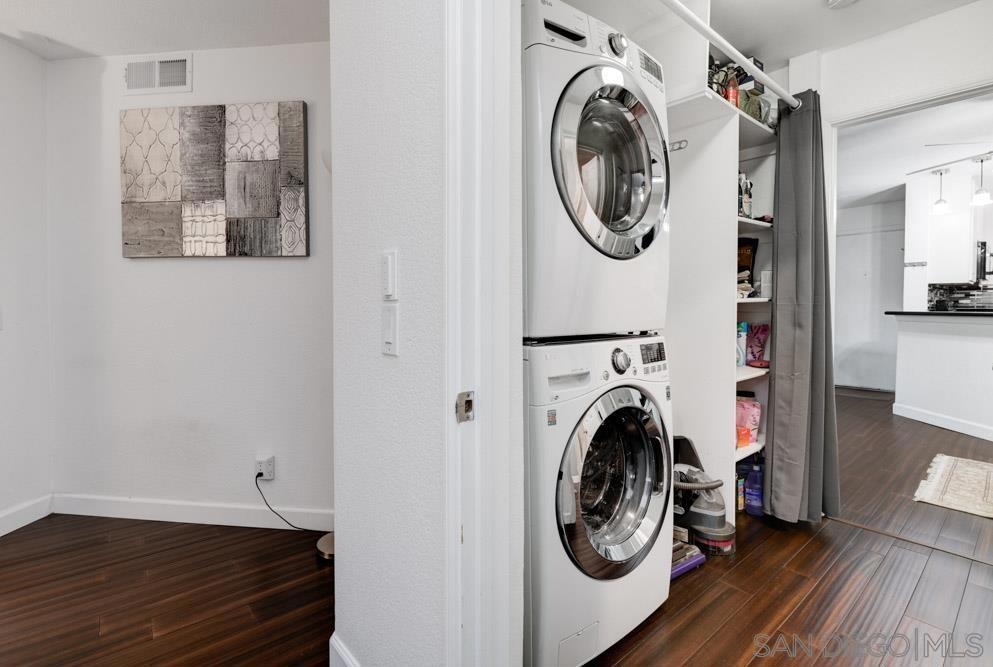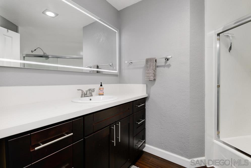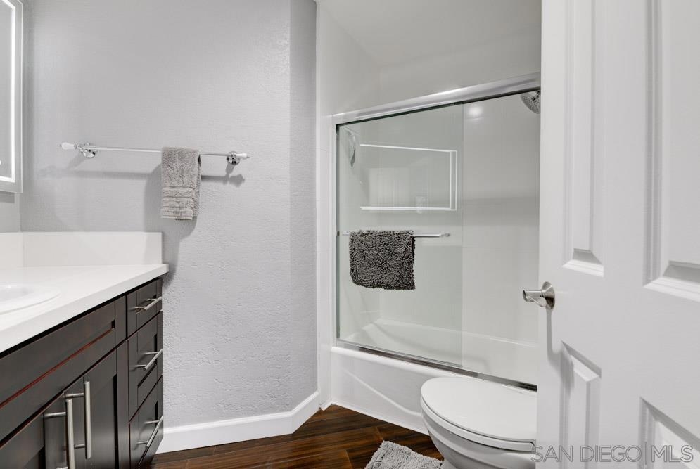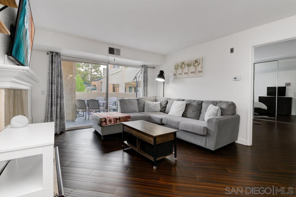 It's Here.. Rare sunny south facing and upgraded 2x2 condo with one of the largest patios in this Mira Mesa community! You will love that this home is packed with tremendous value including an in home washer/dryer, two car garage w/ storage, living room fireplace, dual access to the oversized patio for entertaining your guests and much more. Additional features include a spacious split bedroom and bathroom floor plan with updated quartz countertops and vanities, beautiful hardwood style flooring throughout, an open concept fully equipped kitchen and separate dining area. Enjoy the lush park like community amenities including the pool and spa area, BBQ grilling and dog park. Prime location that neighbors Scripps Ranch, Sorrento Valley, Rancho Penasquitos, Miramar College, Miramar Marine Corp Station plus the convenience of restaurants, shopping and entertainment. Don't miss this opportunity this weekend!