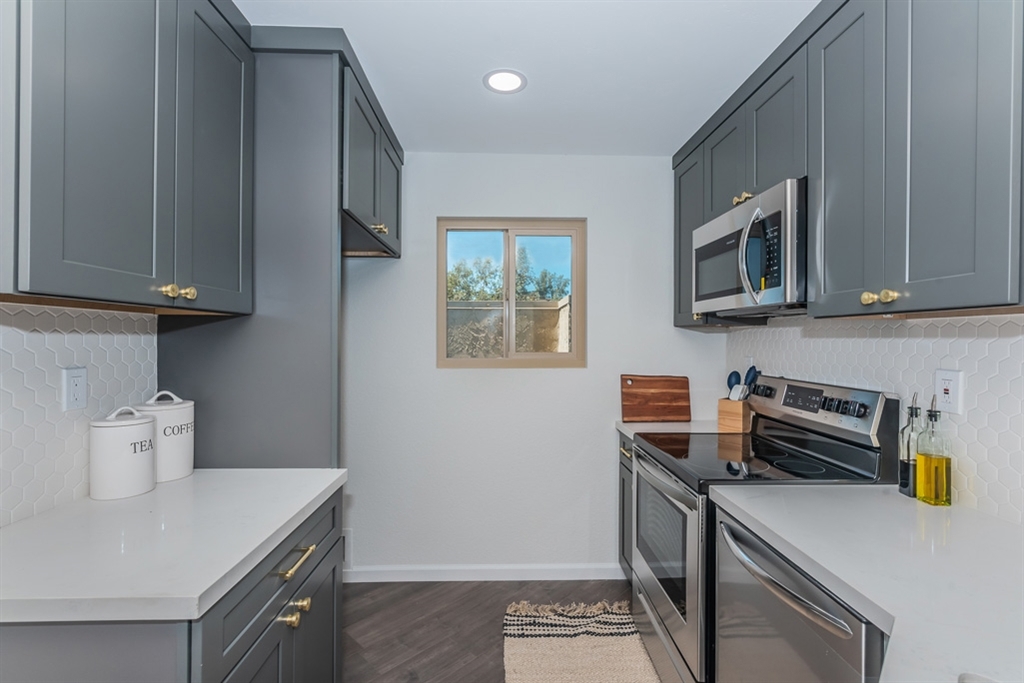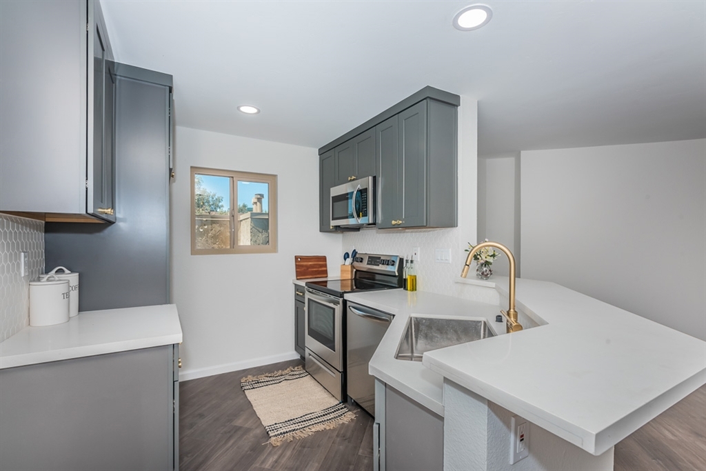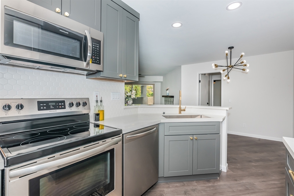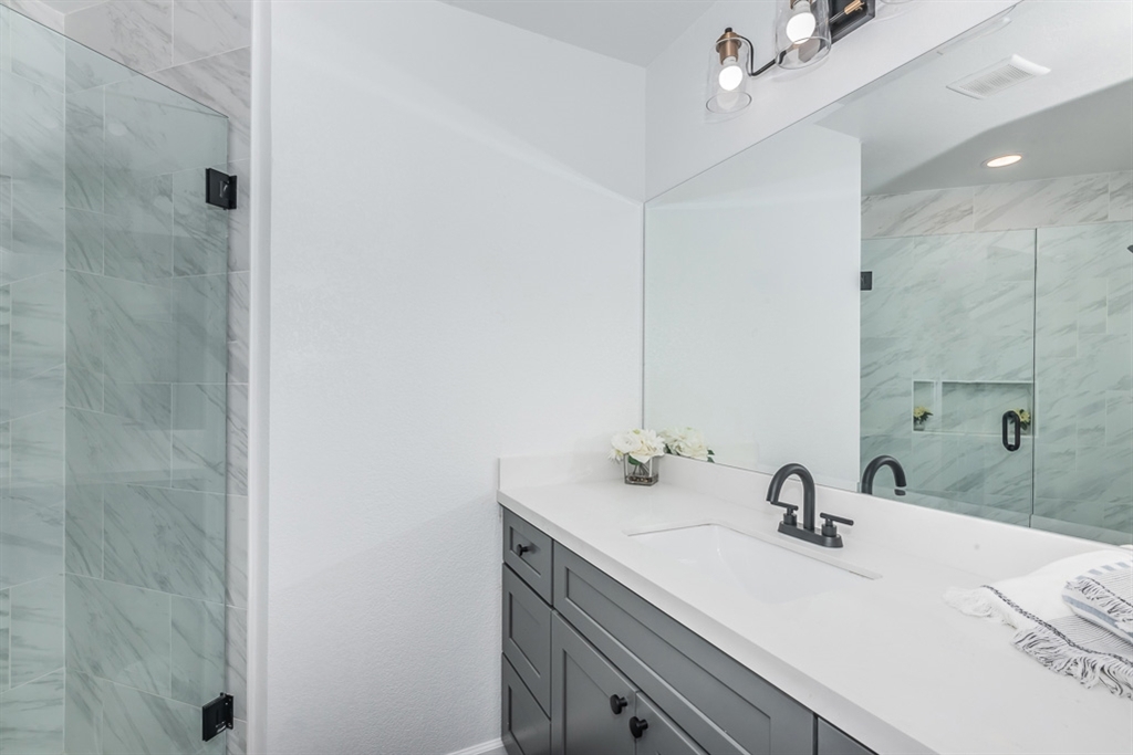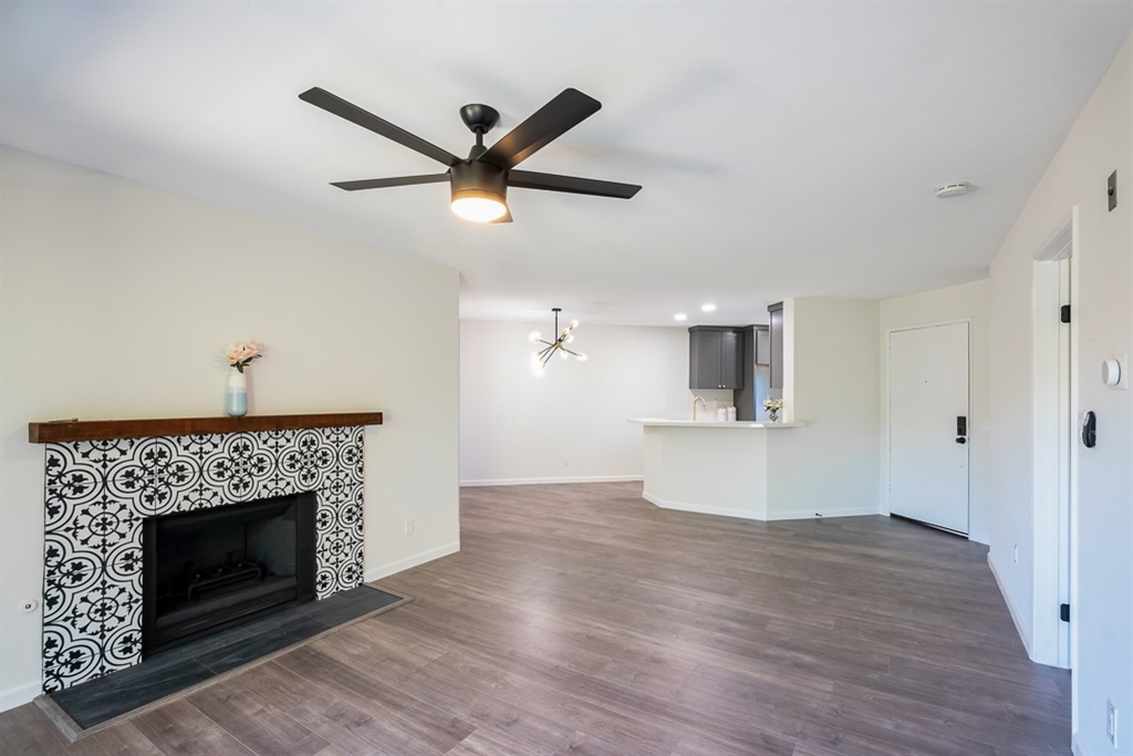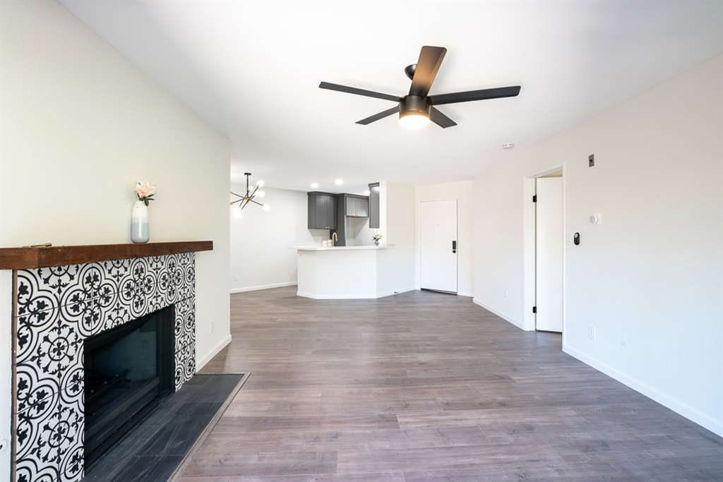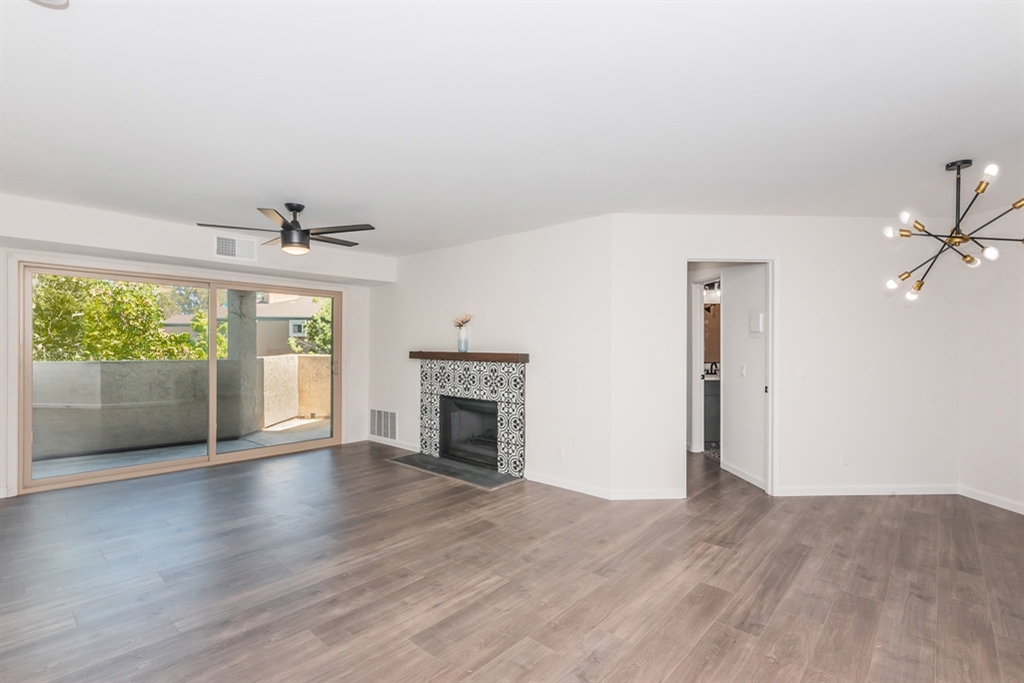 Modernly upgraded 2 bed 2 bath condo in Mira Mesa. Bright and open floor plan offers crisp finishes. Fresh paint and updated flooring throughout. New kitchen cabinets with quartz counters and stainless steel appliances. Rooms are on seperate sides of house and could be treated as a split master. Bathrooms full upgraded with tile surrounds, heavy gauge glass, and new fixtures. Living room complimented by a mosaic tiled fireplace and wood mantle. Direct access to balcony from every room. See supplement 2 car tandem garage. Complex offers pool/spa and BBQs. Well kept grounds with koi ponds throughout and even a dog park. Centrally located and quick freeway access.. Neighborhoods: Creekside Equipment: Range/Oven Other Fees: 0 Sewer: Sewer Connected