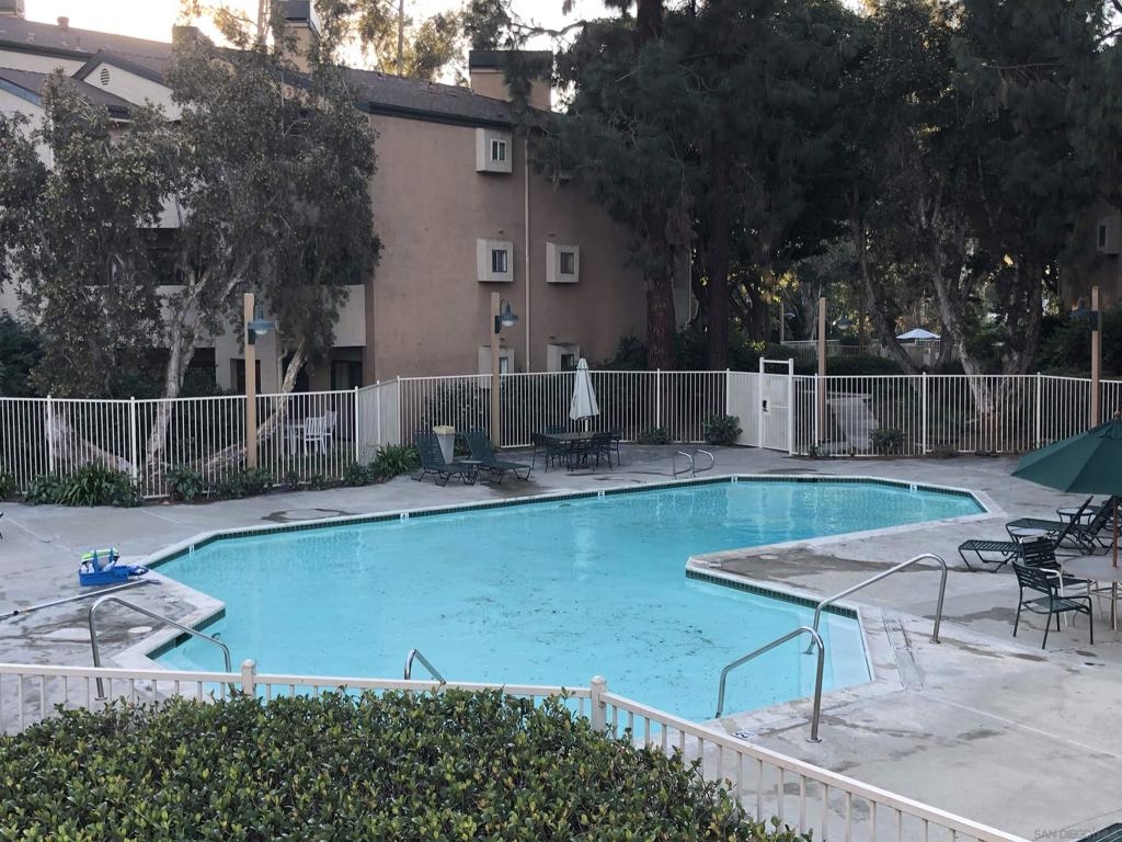 Cozy and remodeled 2 bed/2bath with private tandem garage. Sparkling granite counters in kitchen and both bathrooms, recessed lighting, and wood-like ceramic tile flooring throughout. This corner ground-level unit provides owner privacy along with a spacious outdoor patio surrounded by trees and water fountains. Newer SS appliances, stacked in-unit washer/dryer. Complex has pool, 2 spas, BBQ area and a dog run. Minutes from I-15 and Mira Mesa shops, SD Miramar College, restaurants, bars and more! **Broker and Broker's agents do not represent or guarantee accuracy of the square footage, permitted or un-permitted space, bed/bath count, lot size/dimensions, schools, or other information concerning the conditions or features of the property. Buyer is advised to independently verify the accuracy of all information through personal inspection and with appropriate professionals to satisfy themselves.** Equipment: Dryer,Garage Door Opener, Range/Oven, Washer Sewer: Sewer Connected Topography: GSL