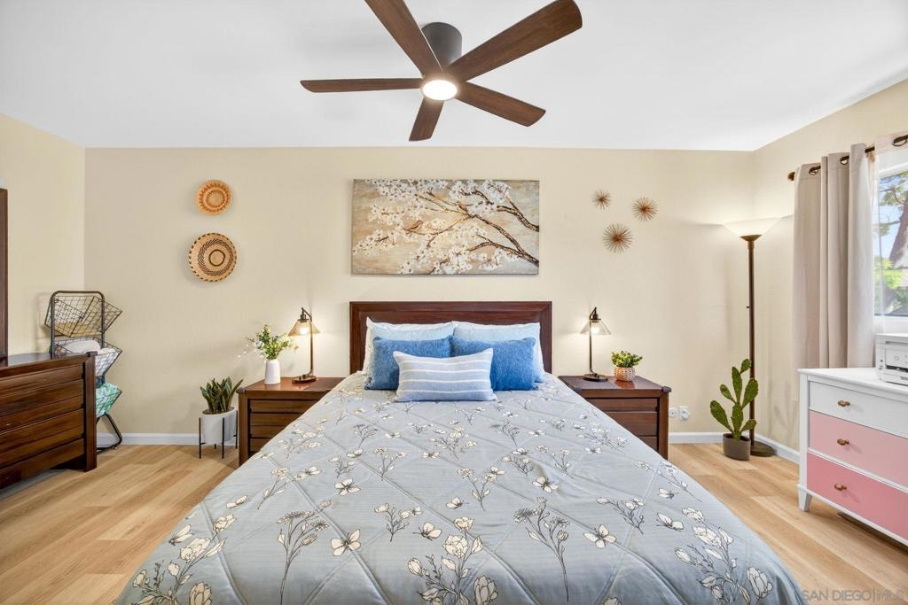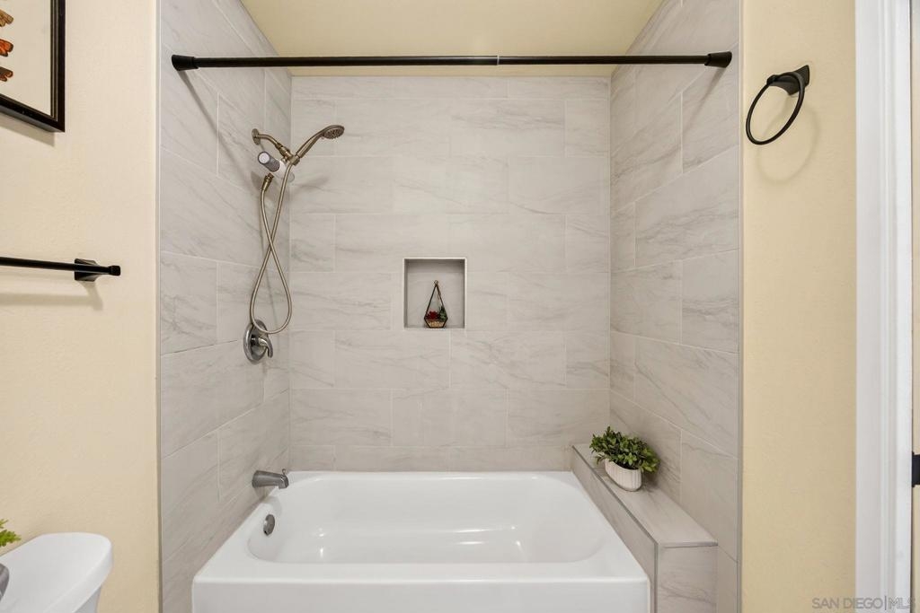Welcome to 9757 Caminito Cuadro a bright upper-level end unit located in the highly desirable Shadow Tree community of Rancho Peñasquitos. This 2-bedroom & 1.5 bathroom condo offers vaulted ceilings, abundant natural light, and an open-concept living space featuring a cozy fireplace and private balcony perfect for relaxing or entertaining with detached garage. The functional floor plan provides comfortable living with excellent flow, ideal for first-time home buyers, VA buyers, FHA buyers, downsizers, or investors seeking strong rental potential in North County San Diego. HOA includes water, trash, cable, HBO Max, Hulu, Disney+, and Spectrum high-speed WiFi, offering exceptional value and convenience. Residents enjoy access to a community pool, lush landscaped grounds, and guest parking. Located within the award-winning Poway Unified School District and just minutes to shopping centers, parks, hiking trails, and quick access to I-15 freeway providing easy commuting to downtown San Diego, Sorrento Valley, and coastal areas. If you’re searching for a move-in ready condo in Rancho Peñasquitos with top schools, strong amenities, and VA/FHA financing eligibility this is it.
