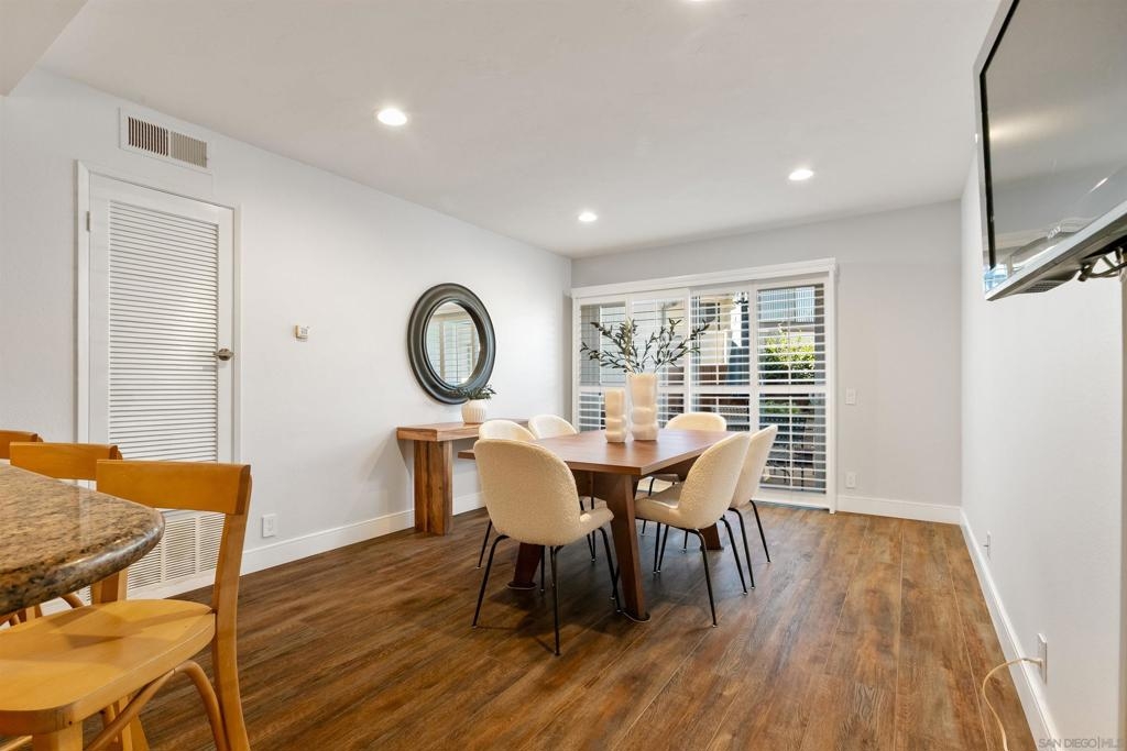 Tierrasante Treasure. Beautiful large 1,989 sq. ft. Townhome has 4 bedrooms upstairs; 4th bedroom has closets but often used as a flex room. Direct 2 car-garage access; in unit laundry; Dual pane windows. This home is situated as an "inner unit" not on freeway or main road. Plantation shutters throughout. Home has air-conditioning. All electrical can lights changed to LED. Moen water shut off installed in garage. Garage recently updated. Newer roof installed in 2025. Updated within the last few years with LVP flooring on entry level and carpet upstairs. Newer Kitchen & appliances. Newer bathrooms. Villa Monterey is well located off freeway 15 with lush green open spaces, 3 pools & 2 Spas, tennis courts, (RV parking with additional fee). Tierrasante often called T-town by the locals offers access to Trails, Rec center, multiple parks, shops and schools