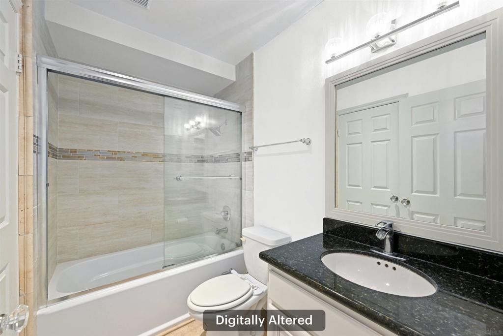 Inviting Updated Condo With Modern Comforts and Prime Location! Welcome to this bright and airy ground-floor home offering 2 bedrooms, 2 full bathrooms, and approximately 850 sq. ft. of comfortable living space. This thoughtfully updated unit combines style and convenience, featuring in-unit laundry, dual-pane windows, and a spacious balcony accessed through a sliding glass door—perfect for relaxing or entertaining. The living room centers around a cozy fireplace, creating a warm and inviting atmosphere. The primary suite includes two closets for ample storage, while both bathrooms feature tasteful, updated finishes. A well-appointed kitchen provides the ideal space to prepare your favorite meals. Enjoy access to community amenities including a pool, spa, fitness center, and clubhouse—all just steps away. The HOA covers water and trash, adding to the convenience of this well-maintained community. Perfectly situated near shops, restaurants, and a medical center, with easy freeway access and proximity to hiking and biking trails at Miramar Reservoir. You’ll also be just a short drive from Miramar Air Station, local colleges, Mission Valley, beaches, and downtown San Diego. An assigned parking space is conveniently located just steps from your front door, completing this move-in-ready gem.