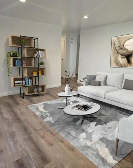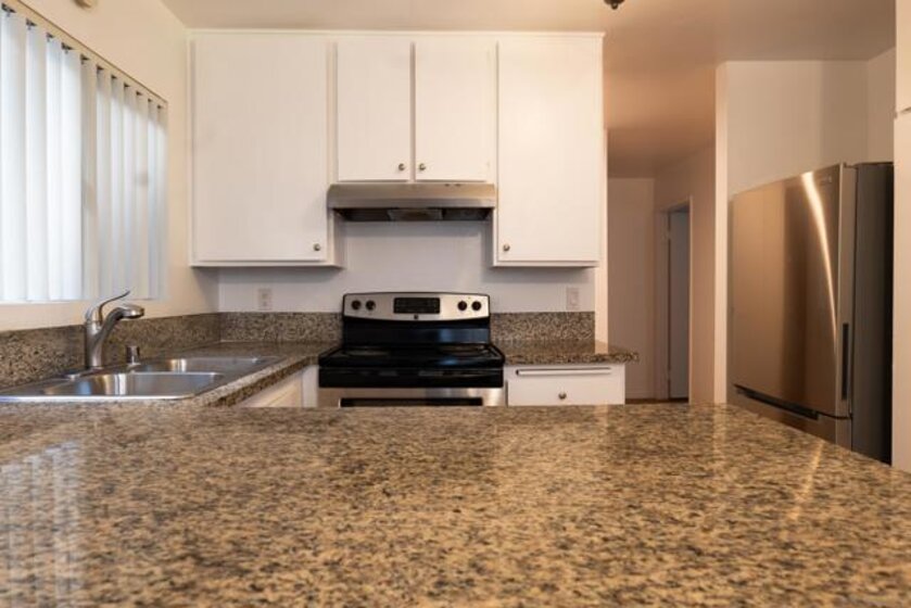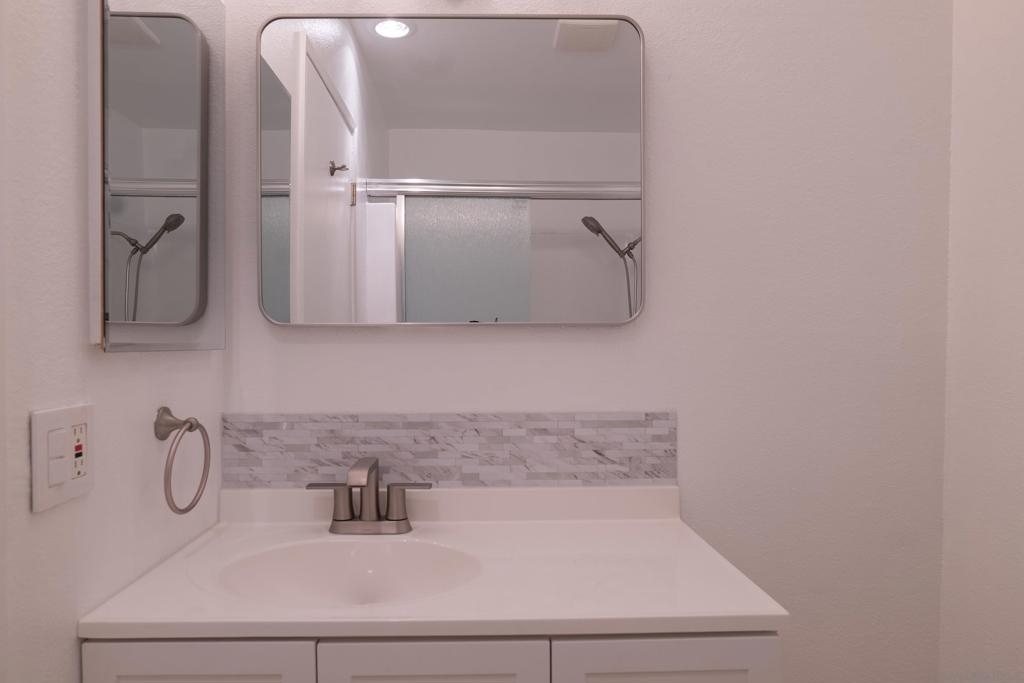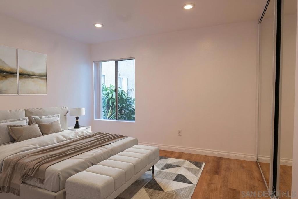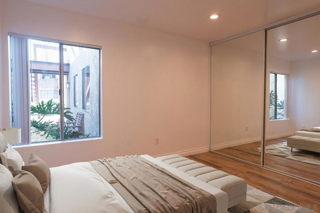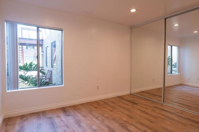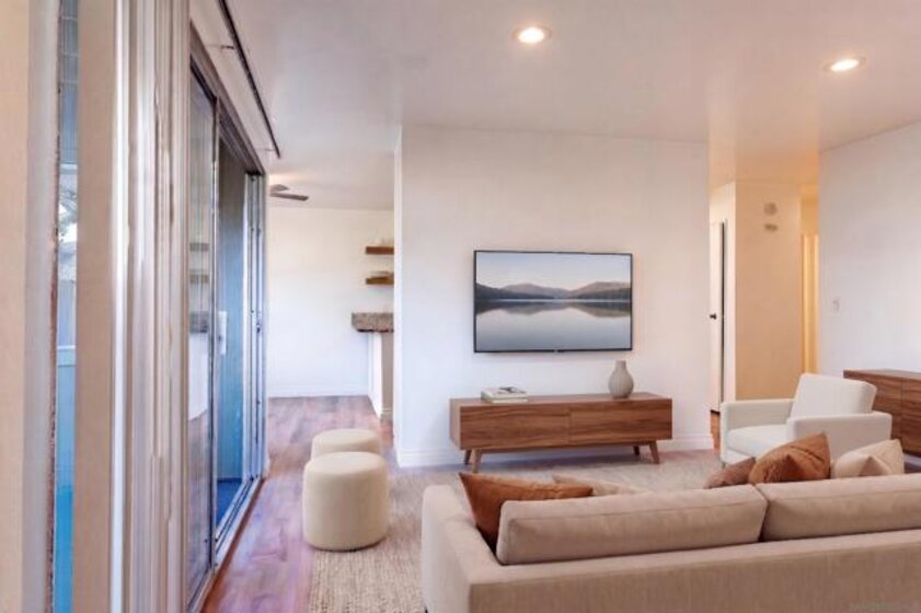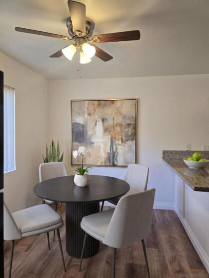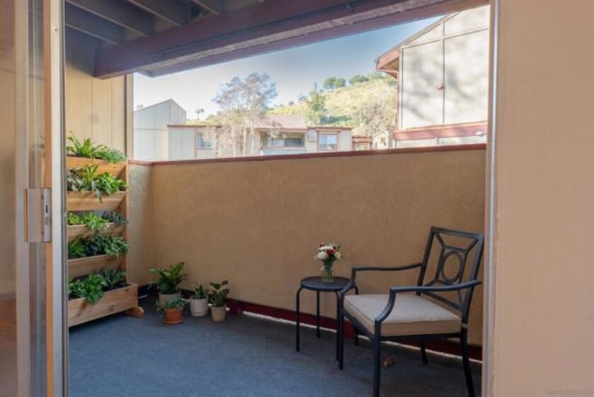 This beautifully updated first-floor De Cerro unit offers nearly 1,200 square feet of comfortable living space, featuring two spacious bedrooms and two bathrooms, including a private bath in the primary bedroom. Upgrades include new flooring and baseboards throughout, recessed lighting, and fresh interior paint. The home showcases new fixtures including toilets, faucets, valves, trim, and sinks, along with newer, accessible plumbing. Additional improvements include new vanity cabinets, light fixtures, mirrors, a new electrical panel, and updated switches and outlets for modern convenience. Vertical blinds provide clean window coverings, and the unit opens to a spacious private patio with a generously sized storage closet. The HOA permits the addition of an in-unit laundry area, if desired. Each additional parking space is 30.00 per month