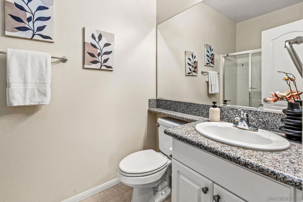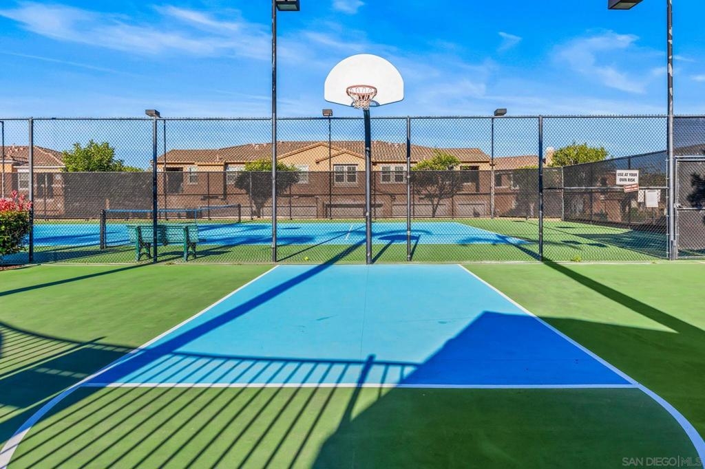 Highly updated Savannah Terrace condo in desirable Sabre Springs with stylish upgrades throughout. Features include wood flooring, stainless steel appliances, gas range, an electric fireplace, recessed lighting, new carpet in the bedrooms, and ceiling fans for added comfort. Full size electric washer, gas dryer in unit. The spacious primary suite offers a relaxing retreat, while central A/C and full-size in-unit laundry (w/gas dryer) add everyday convenience. Enjoy the private, spacious balcony - perfect for morning coffee or unwinding at the end of the day. A detached one-car garage with built-in storage is located directly below the unit, offering both privacy and convenience. Savannah Terrace features a spacious, beautifully maintained community setting with abundant greenery and mature foliage throughout. Resort-style amenities include a swimming pool, hot tub, tennis court, basketball half-court, racquetball court, social lounge, outdoor BBQ area, library, children's playroom, and convenient guest parking.